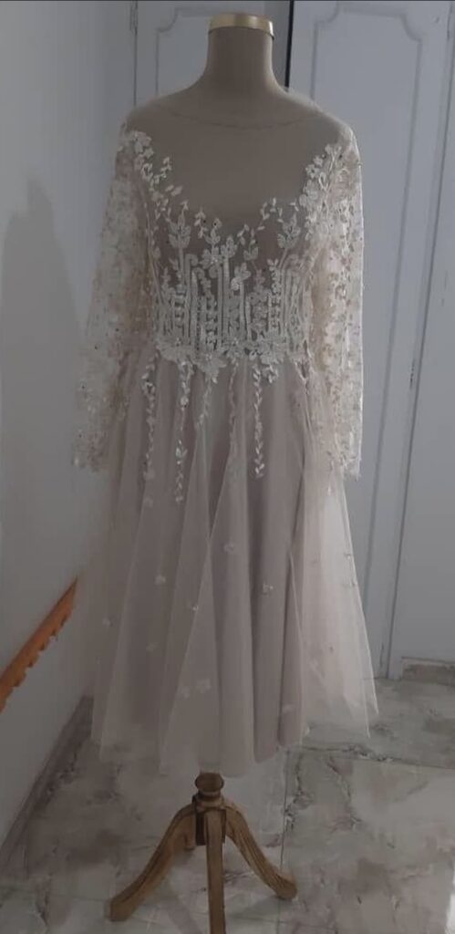 Chaque robe est pensée comme une pièce unique, en dialogue avec le corps, l’histoire et le moment vécu.